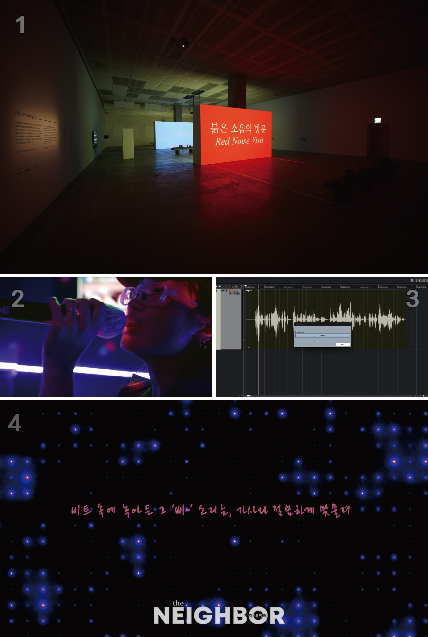 ‘ºÓÀº ¼ÒÀ½ÀÇ ¹æ¹®(2018)’, ‘ûÀ½ ÈÆ·Ã(2022)’, ‘¹Ì·¡ÀÇ Ã»ÃëÀڵ鿡°Ô I(2022)’ µî ±¸ÀÛÀ» ÇÔ²² Àü½ÃÇÑ´Ù. ±¸ÀÛÀº ¾î¶² ±âÁØÀ¸·Î ¼±Á¤Çß³ª? ½Ã¸®Áî ÀÛ¾÷À» ¿ì¼± ¼±Á¤Çß´Ù. ‘ºÓÀº ¼ÒÀ½ÀÇ ¹æ¹®’, ‘ûÀ½ ÈÆ·Ã’°ú ½ÅÀÛ ‘Go Back To Your’´Â ÀÏÀÎĪ û°¢ °æÇèÀ» ±¸ÇöÇÑ ºñµð¿À ½Ã¸®Áî·Î, ÅØ½ºÆ®¿Í Ä÷¯, ¼Ò¸®°¡ ÁÖÃàÀÌ µÇ¾î ÀÌ¾ß±â ¼Ó ÁÖÀΰøÀÇ °ú°Å û°¢ °æÇèÀ» ÀçÇöÇÑ´Ù. ‘¹Ì·¡ÀÇ Ã»ÃëÀڵ鿡°Ô I’°ú ‘¹Ì·¡ÀÇ Ã»ÃëÀڵ鿡°Ô III’µµ ¿¬ÀÛÀÌ´Ù. ÀÌ ÀÛǰÀº µå¹°°Ô ¿Î½º ½Ç¸°´õ·Î ³²¾Æ ÀÖ´Â 20¼¼±â ÃÊ¹Ý ¹ÎÁ·ÁöÇÐÀû ³ìÀ½¹°À», Çö´ëÀÇ ¿Àµð¿À ±â¼úÀ» ÅëÇØ ÀçÇØ¼®ÇÔÀ¸·Î½á ³ìÀ½¹°¿¡ ¼û°ÜÁø ¿ª»çÀûÀ̰í Á¤Ä¡ÀûÀÎ ÇÔÀǸ¦ µå·¯³½´Ù.